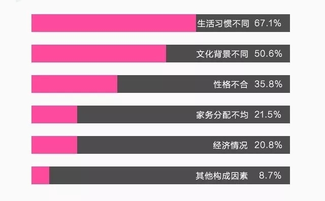 63.7%的太太表示跟父母偶尔会有摩擦。两个不同时代出生的人,受到生活环境、教育程度等等影响,难免会有想法不一致、发生矛盾的时候。而在于婆婆相处的过程中,67.1%的太太们认为发生摩擦的最大的原因源自于生活习惯上的不同。