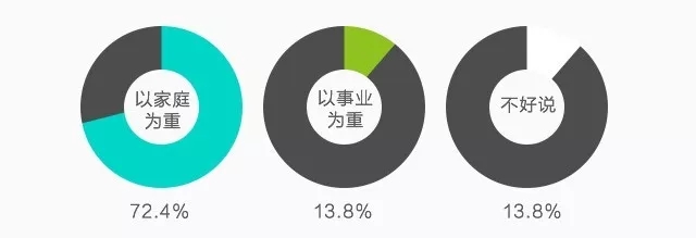 59.3%的太太认为工作对生活幸福的影响非常重要,但是当家庭和事业发生矛盾时,有72.4%的太太会选择一家庭为重。