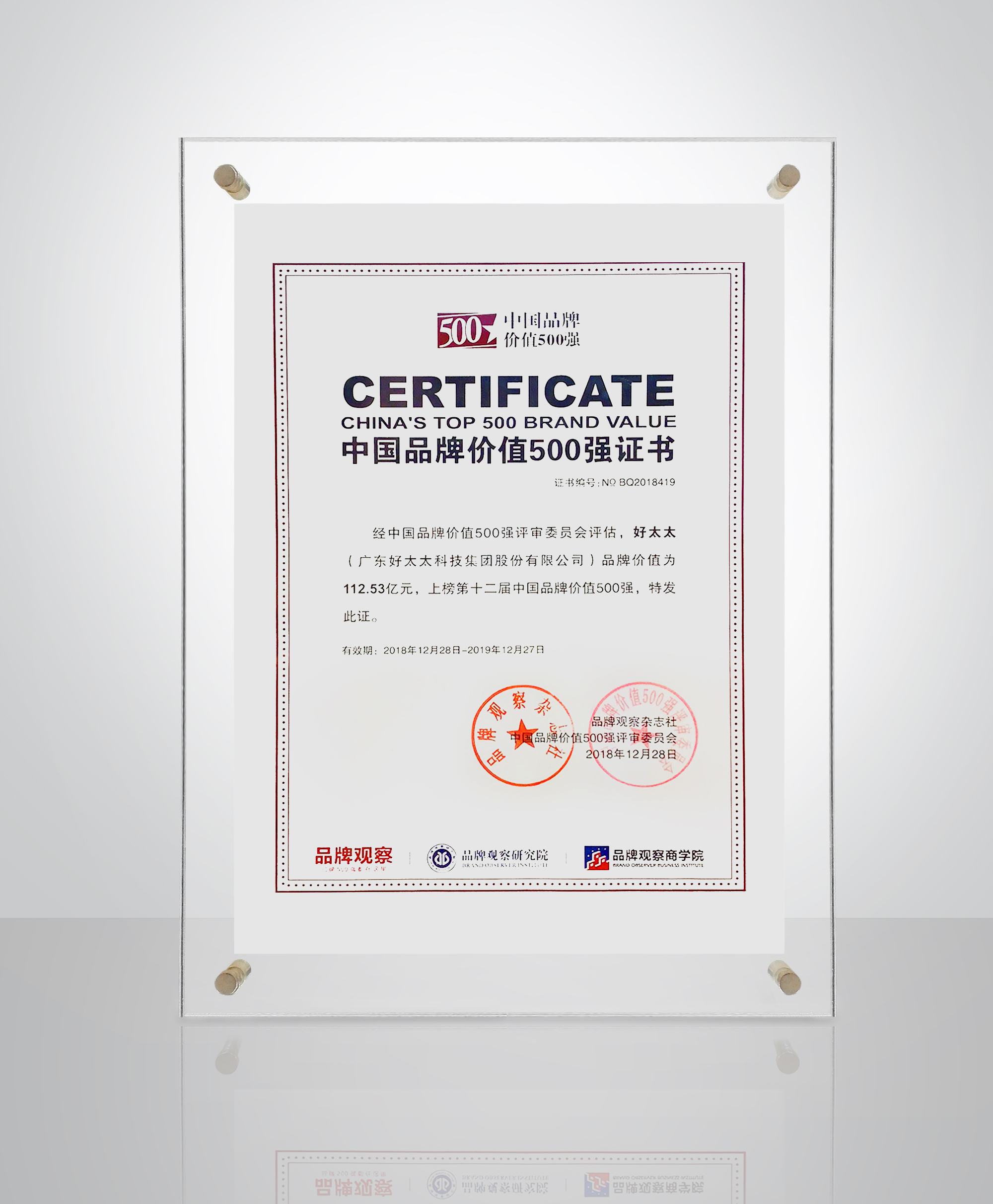 中国品牌价值500强榜单是由中国品牌研究院和广东工业大学品牌观察研究院联合评估,评估体系涵盖了年营业收入、营业利润、行业属性、行业地位、品牌历史等多个维度,符合品牌价值评估国际标准,具有极高的专业性。