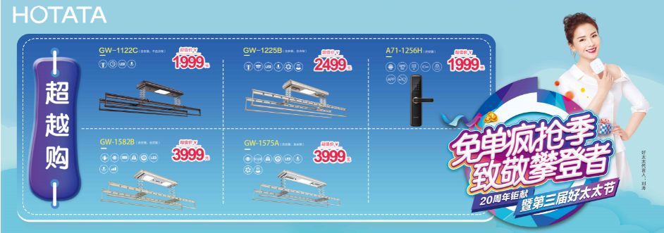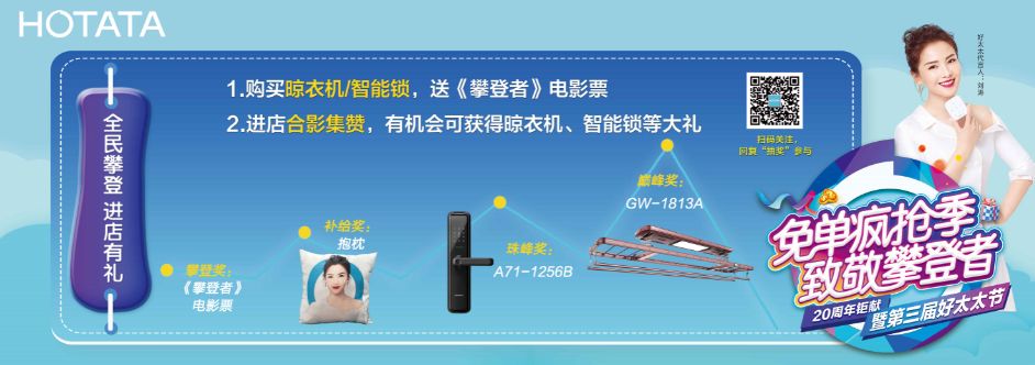 *免单购:同时购买两台科徕尼智能锁A71-1256H(全国统一活动价:1999元/台,含安装),即送一台AG尊时凯龙晾衣机GW-1211B(三杆,不含安装,不含衣架)