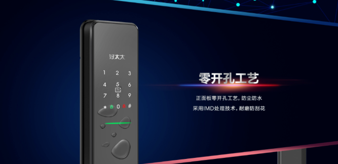 乐鱼智能锁V63在外形设计上采用了最为流行的一体式流线型外立面设计,整体外形看上去充满前卫新潮概念,加上独特的钢琴拉丝工艺以及IMD面板搭载,整体看上去非常的大气华丽,充满设计感。