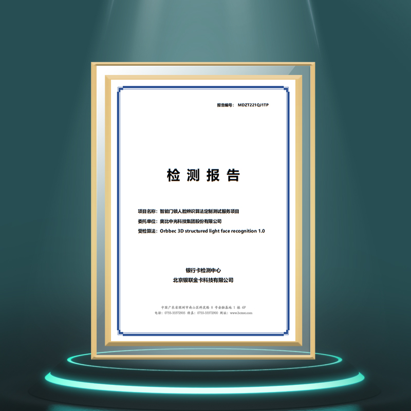 3D人脸模组通过银行卡检测中心(BCTC)认证
