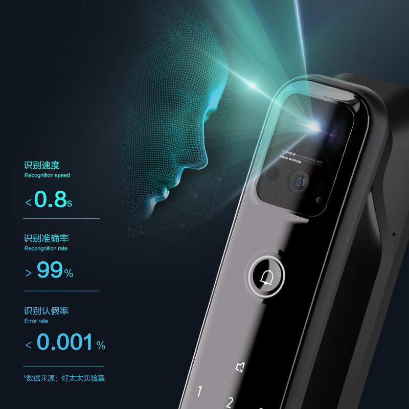 3D结构光人脸识别 | 4寸IPS高清彩屏 | 161°超广角猫眼